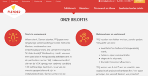 In dit project werkte ik samen met een prettige websitebouwer (BS Media); vakmensen op het gebied van websites en SEO. Zij leverden mij een lijst aan met zoektermen; woorden die vaak moeten terugkomen op een pagina om zo de vindbaarheid te vergroten. Daarna gaat het grote puzzelen beginnen. Hoe kun je variëren met de woorden schilder, schildersbedrijf, schilderwerk, schilderen en toch de teksten prettig leesbaar houden?